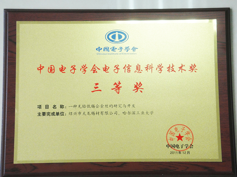 中國電子學(xué)會電子信息科學(xué)技術(shù)獎三等獎